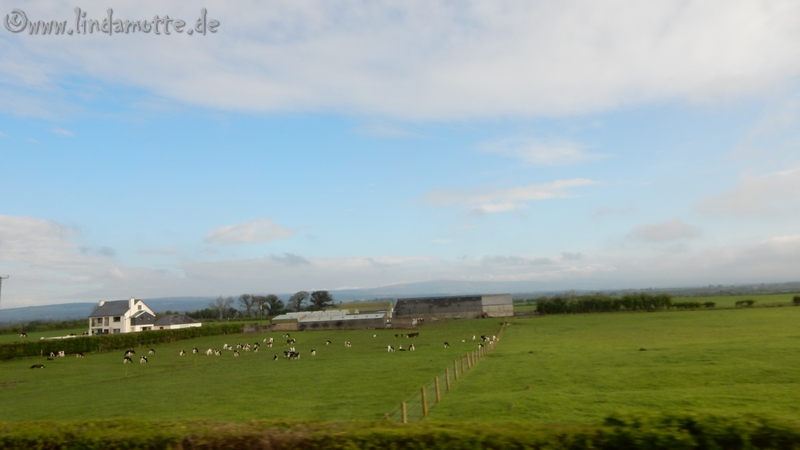 Die Busfahrt durch verschiedene Städte, wie z. B. Limerick und vorbei an alten Gemäuern z. B. Doolin.