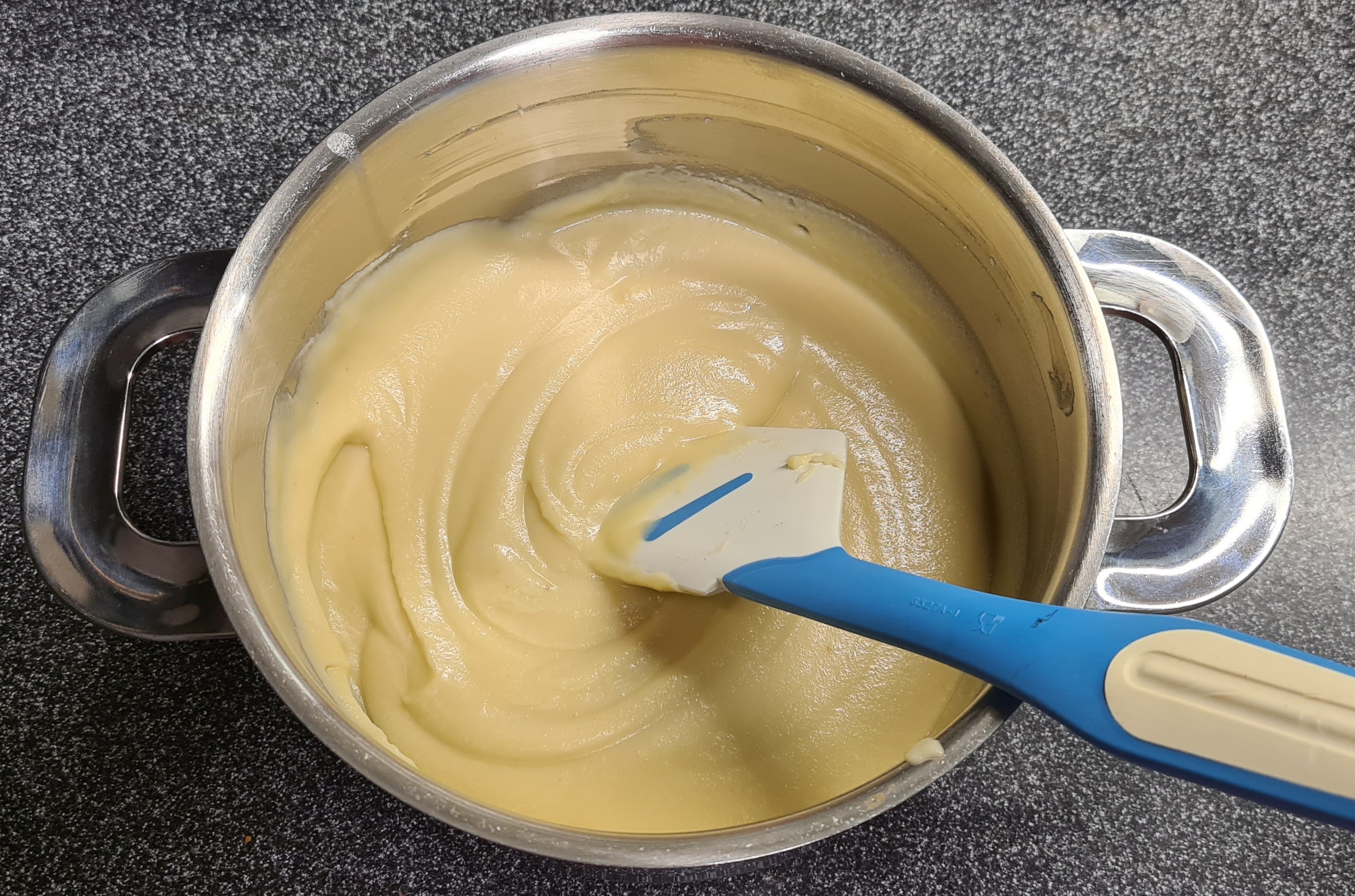 Alles etwas erhitzen und glatt rühren.