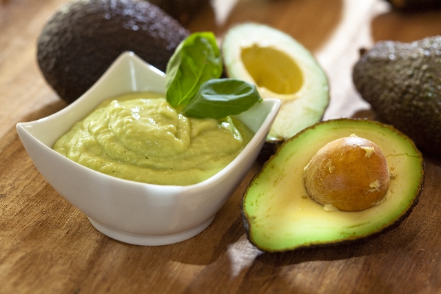 Die Avocados der Länger nach einmal rundherum bis auf den Kern einschneiden, beide Hälften durch leichtes gegeneinander Drehen voneianander Lösen, den Kern entfernen und das Fruchtfleisch mit einem Löffel aus der Schale kratzen. Das Fruchtfleisch mit einer halben Zwiebel, dem Knobi und etwas Milch mit einem Pürrierstab zu einer geschmeidigen Creme verarbeiten.